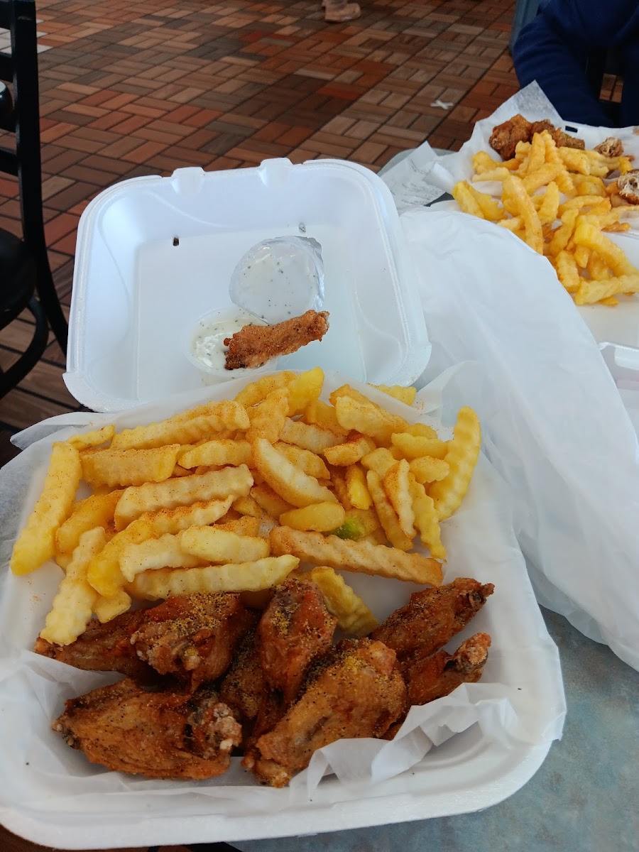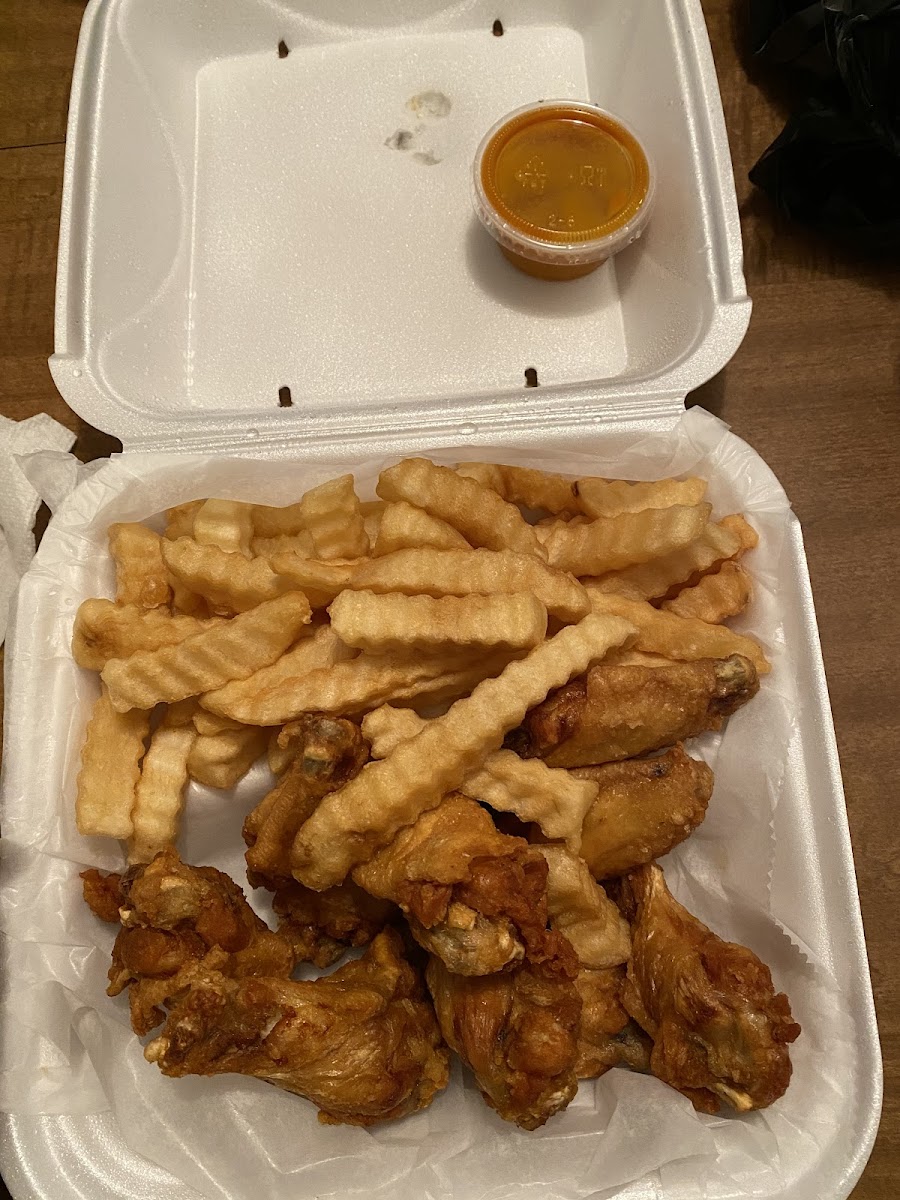 Atown wings will definitely do in a pinch, the food tasted amazing, but the wings were crazy small, and at roughly a buck a wing, I would've liked them to be a bit bigger. They didn't skimp on the fries thou, and the Cajun ranch variety was a slam dunk. Can't really say much about the atmosphere of the place, as I got my order to go, it was a small little "hole in the wall" looking place that you'd expect from a "mom and pop" local type of business. I find no problem with that, but if you do, might wanna look elsewhere. Service was nice and fast, no complaints there at all. All in all, I would've given the place a 4 out 5 but the wing size is a big negative to overcome.. I would recommend it, but only if better options weren't readily available